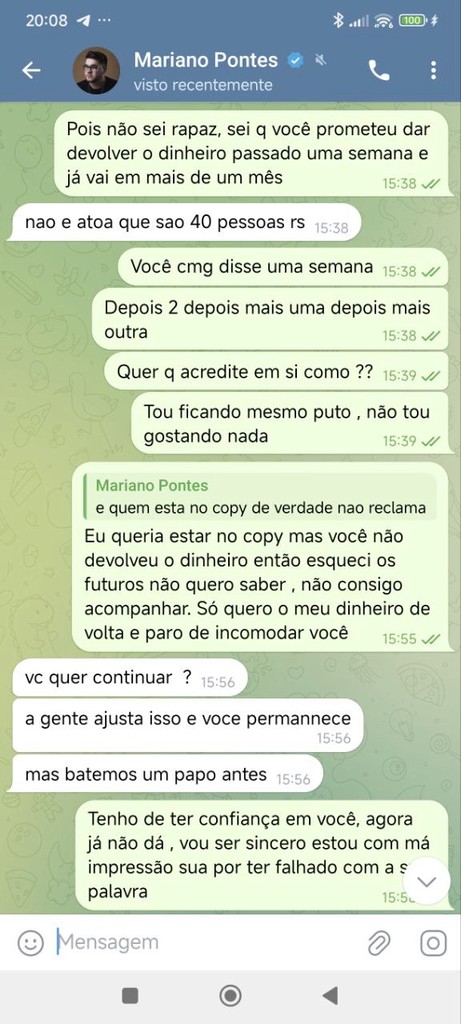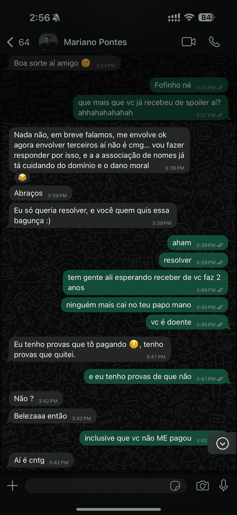 Mariano parte para o ataque, ofensas, ameaças e vitimismo ao perceber que as vitímas tomaram consciência do golpe que tomaram.