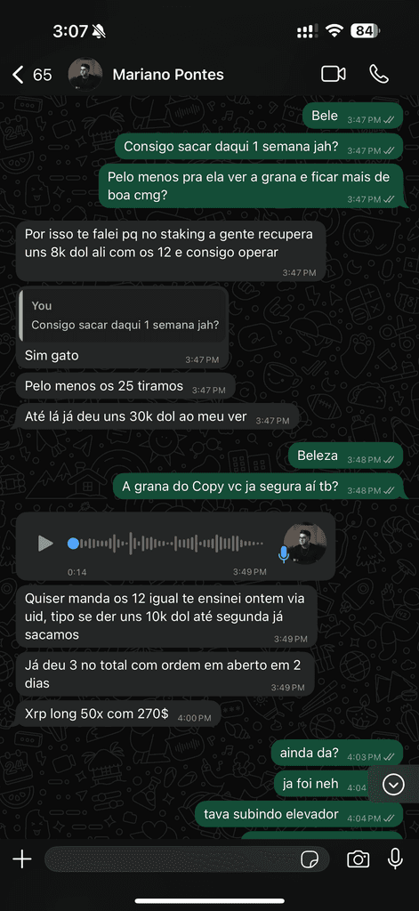 Veja como Mariano faz para enrolar as suas vítimas, sempre dando desculpas e pedindo por mais tempo para devolver o que roubou.
